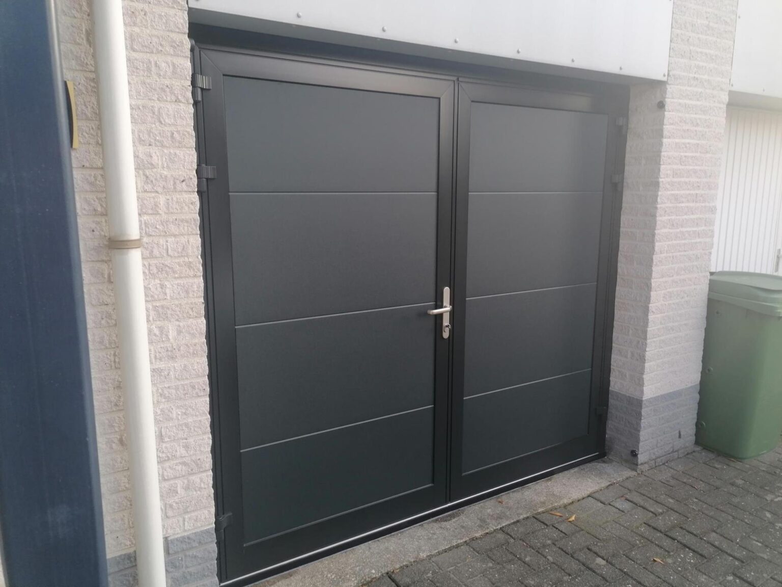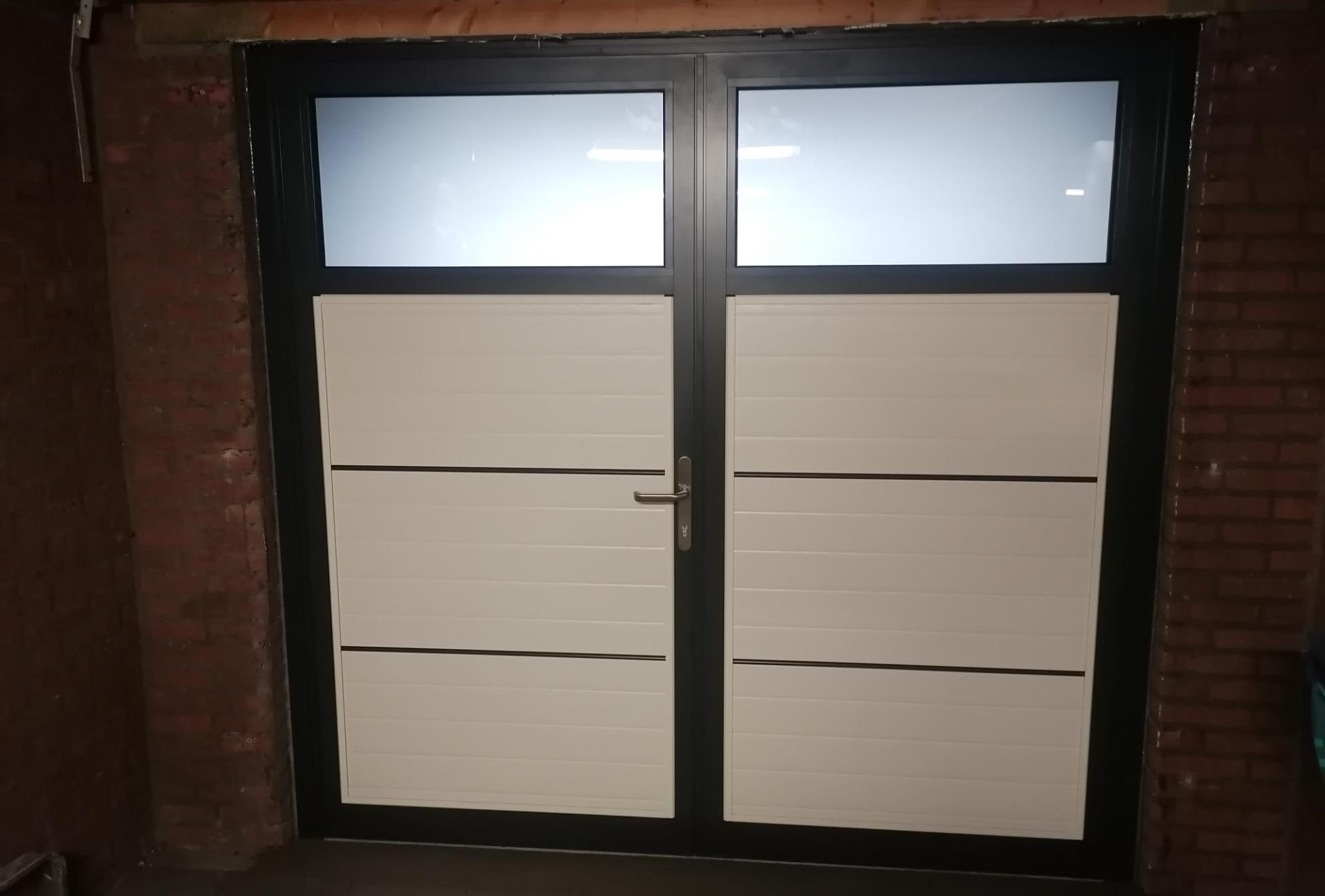 Openslaande dubbele garagedeuren, om zelf te plaatsen/monteren.